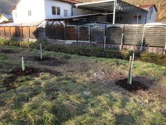 Elmstein. (fp) Am Samstag, den 8. Februar, fanden sich fünf Mitglieder des Obst- und Gartenbauvereins Elmstein in der Bahnhofstraße zusammen, um drei Apfelbäume zu pflanzen. Diese Pflanzaktion diente als Ersatz für zwei ältere Apfelbäume, die in der Samenklenge gerodet wurden. Die neuen Apfelbäume wurden auf einer öffentlichen Fläche in der Bahnhofstraße gesetzt und stehen symbolisch für die drei Kindergärten in Elmstein. Der Obst- und Gartenbauverein lässt aus den geernteten Äpfeln Saft pressen, der anschließend kostenlos und gleichmäßig an die Kindergärten verteilt wird. So wurden beispielsweise im Jahr 2022 insgesamt 75 Liter naturtrüber Apfelsaft an die KiTas abgegeben. In den Jahren 2023 und 2024 verhinderten jedoch Spätfrostschäden während der Blütezeit eine ertragreiche Ernte; pro Baum wuchsen lediglich fünf bis zehn Äpfel, was nicht zur Saftgewinnung ausreichte.