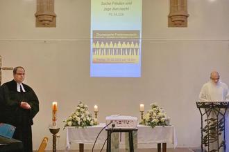 Die ökumenische Friedensandacht in der ehem. Klosterkirche in Lambrecht wurde durch Pfarrer Martin Groß und Gemeindereferent Michael Kolar gestaltet.