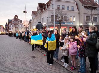 Vor dem Friedensgebet im Speyrer Dom fand eine Lichterkette entlang der Speyerer Maximilianstraße statt. Zu der Lichterkette unter dem Motto „Gemeinsam gegen den Krieg“ hatte das Bündnis für Demokratie und Zivilcourage Speyer aufgerufen.