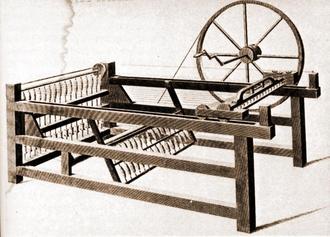 Die Spinning Jenny, 1764 als Hausspinnmaschine erfunden und bis 1774 zur Industriemaschine entwickelt