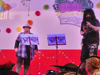 Im Zwiegespräch "Volksmusikant vs. Rockmusiker", begeisterten Karin Lambrecht und Alex Gerhard mit spritzigem Wortwitz, während Frank Grün und Carolin Riedel vom Fasnachtskomitee Die Lambrechter Gäsböck mit einem urkomischen Kaffeeklatsch für ausgelassene Heiterkeit sorgten.