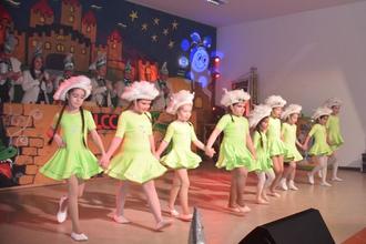 Nach Freigabe der Bühne für Spaß und Unterhaltung, zeigte das Kindertanzmariechen, Sofia Gödel, ihren Tanz aus der Spieluhr und begeisterte das Publikum mit ihrem Können. Der darauffolgende Gardetanz der „Konfettis“ ließ die Bühne in den Vereinsfarben erstrahlen. Um auch die Menschen im Saal zu fordern, wurde die erste Schunkelrunde eingeläutet.