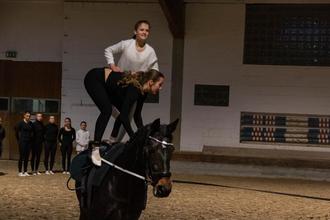 Erstmals war auch unser Newcomer Pferd „Chameur“ dabei. Der braune Wallach wird uns seit einigen Monaten von Familie Spangenberger zur Verfügung gestellt, um unseren Rentner Don etwas zu entlasten. Don ist seit 16 Jahren die Säule der Abteilung. Noch immer besteht er regelrecht darauf, freitags und samstags in der Halle mit dabei zu sein und die Anfänger auf seinem Rücken zu tragen. Doch irgendwann ist es auch gut kürzer treten zu können. Chameur hat sich ungewöhnlich schnell in die Aufgabe eines Volti-Pferdes eingefunden. Ganz behutsam wird man sehen, was die Zukunft mit dem lieben Kerl bereithält. Es scheint so, als würden ihm der Job und die vielen Streicheleinheiten der Kinder sehr gefallen. An dieser Stelle nochmals ein ganz herzliches Dankeschön für das Vertrauen und die Möglichkeit.