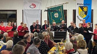 Unser Gastchor aus Kaiserslautern (Schubertchor) brachte unter der Leitung von Jutta Jochum Lieder wie: „Wir feiern ein Fest der Freude, oder „An die Musik“ (Franz Schubert) aber auch „Ich wollte nie erwachsen sein (Peter Maffay“) zu Gehör und mit „Pigalle, Pigalle“ sowie „Ganz Paris träumt von der Liebe“ brachte der Chor französischen Flair in des Saal.
