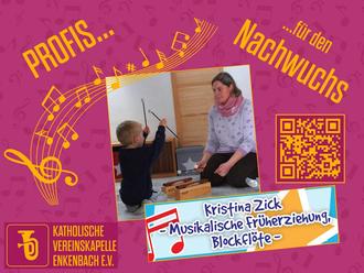 Kristina Zick leitet als ausgebildete Musikpädagogin die musikalische Früherziehung und die Blockflötenausbildung.