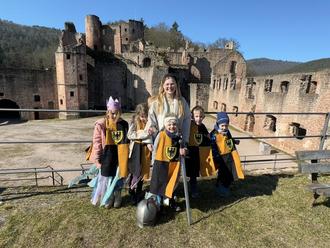 Im Rahmen meines Anerkennungsjahres durfte ich, Meline Jülly, ein spannendes Projekt zum Thema „Ritter und Prinzessinnen im Mittelalter“ in der Kita Mäuseburg begleiten. Gemeinsam mit fünf kleinen Projektleitern begaben wir uns auf eine kreative Reise in die Welt des Mittelalters. Ein Highlight war unser Ausflug zur Hardenburg nach Bad Dürkheim, wo die Kinder hautnah die Burgruine erkunden konnten. In der Kita selbst wurden zahlreiche Angebote umgesetzt: Es wurde gebastelt, gespielt, gebacken und gekocht – alles passend zum Thema. Die Kinder gestalteten eigene Kostüme, erfanden mittelalterliche Spiele und betrachteten gemeinsam ein Bilderbuch rund um Ritterabenteuer. Zum Abschluss fand ein großes mittelalterliches Fest mit den Eltern statt, bei dem die Kinder ihre Werke und ihr Wissen stolz präsentierten. Das Projekt war ein voller Erfolg und förderte nicht nur die Kreativität, sondern auch das Gemeinschaftsgefühl und die Selbstständigkeit der Kinder.