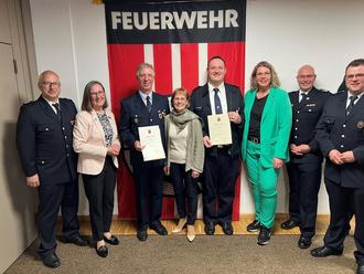 Bürgermeisterin Silke Brunck und die 1. Kreisbeigeordnete Gudrun Heß-Schmidt dankten den Geehrten für ihren jahrzehntelangen selbstlosen Einsatz und die Bereitschaft zur Übernahme von Verantwortung für andere Menschen. Ein besonderer Dank ging auch an die Familien der Geehrten, die allzu oft ihre Angehörigen für Übungen und Einsätze entbehren müssen.