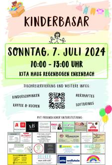 Am 7. Juli findet von 10 bis 13 Uhr der Kinderbasar des Fördervereins Kita Haus Regenbogen???? auf dem Gelände der Kita in Enkenbach statt.