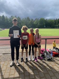 Im 800-Meter-Lauf der Mädchen W12 traten Zoe Stumber und Sophia Woldai mutig in einer höheren Altersklasse an. Zoe belohnte sich mit einer neuen persönlichen Bestleistung von 2:49,99 Minuten und einem starken fünften Platz. Sophia meisterte ihr erstes Rennen über diese Distanz ebenfalls mit persönlicher Bestzeit von 3:02,77 Minuten.