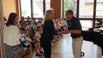 Bei der feierlichen Einbürgerungsfeier am 22. Juni 2023 im Sitzungssaal der Kreisverwaltung Kaiserslautern wurden durch Landrat Ralf Leßmeister an zahlreiche ausländische Staatsangehörige, welche die deutsche Staatsbürgerschaft angenommen haben, Urkunden überreicht. Sein besonderer Dank galt dem Kinderchor des Gesangvereins Enkenbach unter der Leitung von Ekaterina Kronibus, am Klavier von Harald Kronibus begleitet, der mit schwungvollen Liedern die Veranstaltung umrahmte.
