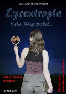 Im Juli und August 2024 wird der zweite Teil der Musicaltrilogie „Lycantropia“ mit sechs Vorstellungen in der Alsenzhalle Alsenborn uraufgeführt. Mit dabei sind wieder zahlreiche Mitglieder des Helden von heute e.V., viele fortgeschrittene und ausgebildete Musiker*innen, Schauspieler*innen und Musicaldarsteller*innen, die zum Teil aus Enkenbach-Alsenborn und Umgebung stammen, aber auch aus verschiedenen Ecken von Rheinland-Pfalz und ganz Deutschland zu uns stoßen.