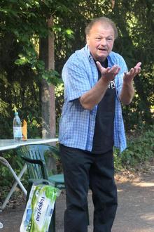 Der Kulturverein Hochspeyer hatte auf das Gelände des Tennisvereins zu einer Openair Veranstaltung geladen. Dem Kabarettisten Gerd Kannegieser war die Freude anzumerken, wieder vor Publikum aufzutreten.