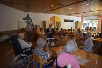 Am Montag, den 08. August 2022 präsentierten uns die Musikgruppe „die fidelen Saiten“, bei herrlichem Sonnenschein, ein sommerlich bunter Melodienstrauß, mit Schlager und bekannten Volkslieder aus beliebten Urlaubsgebieten, im Veranstaltungssaal des Hauses. Begleitet durch Gitarre, Zither, Mandoline und Bass, sowie Gedichten und Soloauftritten, brachten sie eine fröhliche und vergnügte Stimmung in den Alltag und verzauberten und begeisterten unsere Bewohnerinnen und Bewohner aufs Neue. Die Musik löste alte und schöne Erinnerungen aus und schaffte positive Erfahrungen, förderten Kommunikation und Unterhaltung untereinander und stärkten das gemeinschaftliche Erleben. Die Freude über den Besuch der Musikgruppe, war riesig bedankten sich bei den Musikern mit einem ausgedehnten Applaus, für das schöne und abwechslungsreiche Programm, welches sie präsentierten. Eine Veranstaltung, an die wir gerne zurückdenken werden.