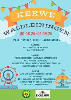 Endlich ist es wieder soweit - Waldleiningen feiert Kerwe! Drei Tage lang heißt es: Spaß, Musik und gute Laune in der Paul-Münch-Scheune.