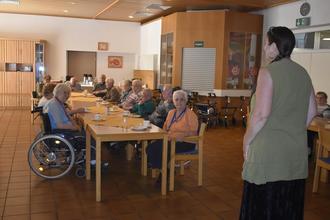 So fanden sich am Samstag, dem 20.08.2022, unsere Bewohner im Veranstaltungssaal zusammen, um an der Märchenstunde für Erwachsene teilzuhaben, die von Frau Gabriele Binder gehalten wurde. Frau Binder überzeugte dabei nicht nur durch ihre lebendige und kreative Vortragsweise, sondern auch mit Gesang, Gitarre und Klangschale. Sie verstand es, jedes Instrument passend in ihren Märchen einzubinden. Den Anfang im abwechslungsreichen Programm machte das Märchen von Christian Andersen: „Der wilde Schwan “.