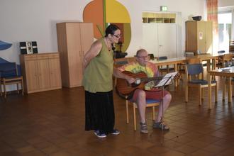 Darauf folgte das Märchen von den Brüder Grimm: „Aschenputtel“, bevor das Programm mit einer Geschichte eines unbekannten Verfassers, „ wem galt die Einladung “ sein Höhepunkt und Ende erreichte. Zwischendurch wurden die Lieder: „ ein schöner Morgen und es zogen einst wilde Schwäne “ mit Gitarrenbegleitung gesungen. Die sonst konzentriert und still zuhörenden Senioren belohnten nach jedem Programmpunkt die Erzählerin Frau Binder mit regem Applaus und man konnte somit deutlich erkennen: Die Welt der Märchen weiß auch unseren Bewohnern zu gefallen, denn sie wissen selbst am besten: Alt bewährte Geschichten vergehen nicht.