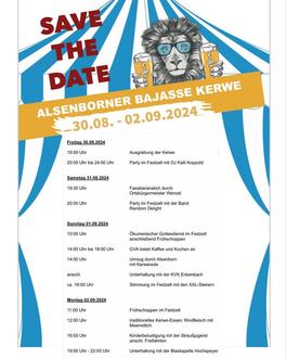 Wir laden euch alle herzlich ein zur Alsenborner Bajasse Kerwe vom 30.08.-02.09.2024.
