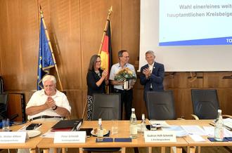 In der Kreistagssitzung am 11. September wurde Kreisbeigeordneter Peter Schmidt wiedergewählt. Mit Blick auf den Ablauf der bisherigen Amtszeit am 31.01.2024 stand die Wahl des hauptamtlichen Kreisbeigeordneten satzungsgemäß auf der Tagesordnung. Laut Kreistagsbeschluss vom 17. Juli dieses Jahres wurde auf die Ausschreibung der Stelle des/der weiteren Kreisbeigeordneten gemäß der Bestimmungen der Landkreisordnung verzichtet. Der bisherige Amtsinhaber Peter Schmidt (FWG) stand für die Wiederwahl zur Verfügung und wurde von der FWG-Fraktion in der Sitzung zur Wiederwahl vorgeschlagen. Ein weiterer Wahlvorschlag wurde vom Gremium nicht eingebracht. In geheimer Abstimmung wählten 36 anwesende Wahlberechtigte mit 33 Ja-Stimmen, 2 Nein-Stimmen und einer Enthaltung Peter Schmidt erneut zum Kreisbeigeordneten des Landkreises Kaiserslautern.