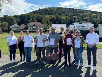 Landrat Ralf Leßmeister überreichte gemeinsam mit Bürgermeister Christian Hirsch die Urkunden und Preise: