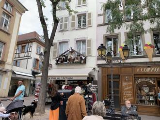 Nach ca. 2 Stunden gab es eine Pause mit „Worscht, Weck und Woi.“ Weiter ging es vorbei an der kl. Freiheitsstatue von Colmar in die wunderschöne Altstadt. Leider konnten wir aus zeitlichen Gründen die Markthalle nicht besichtigen und so blieb es bei einem Bummel durch die Gassen von Colmar.