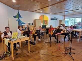 Ein besonderes Highlight des Festes war der Auftritt der Musikgruppe „ Fidele Saiden “, die mit viel Charme und Leidenschaft typisch Pfälzer Lieder und Stücke darbot. Ihre Auswahl an Liedern reichte von fröhlichen Volksweisen bis hin zu bekannten Liedern, die tief in der Region verwurzelt sind. Dabei verstanden es die Musiker hervorragend, die Bewohner nicht nur zu unterhalten, sondern auch aktiv zum Mitmachen zu bewegen, mit zu singen und fröhlich zu sein.Die Melodien der Gruppe versprühten eine angenehme Leichtigkeit, die die Gäste schnell in ihren Bann zog und für ausgelassene Stimmung sorgte.