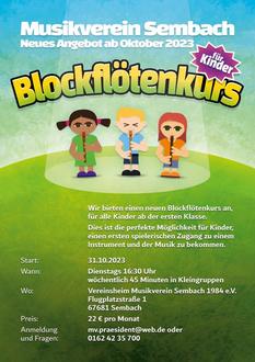 Am 31.Oktober 2023 startet, ein neuer Blockflötenkurs für alle Kinder ab der 1. Klasse beim Musikverein Sembach.