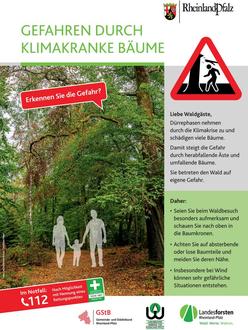 Info-Tafel: Gefahren durch klimakranke Bäume