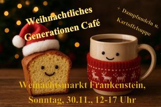 Das Generationen Café findet am Sonntag, den 30.11., von 12:00 – 17:00 Uhr, während des Weihnachtsmarktes statt. Damit auf dem Markt einheitliche Bedingungen herrschen, wird dieses Mal eine Preisliste ausgehängt. Der FöV bietet zusätzlich Dampfnudeln und Kartoffelsuppe an. Für die Kinder wird es ein Weihnachtsbasteln geben. Pünktlich zur Adventspredigt wird das Café seine Pforten schließen.