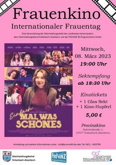 Anlässlich des Internationalen Frauentages, der in diesem Jahr bereits zum 112. Mal begangen wird, lädt die Gleichstellungsstelle des Landkreises Kaiserslautern in Kooperation mit dem Gleichstellungsbeirat Enkenbach-Alsenborn und der PROVINZ 80 Programmkino GmbH am Mittwoch, 08. März 2023 ab 18:30 Uhr zu einem gemeinsamen Filmabend mit der Komödie „Einfach mal was Schönes“ von Karoline Herfurth ins PROVINZ Programmkino Enkenbach-Alsenborn ein.