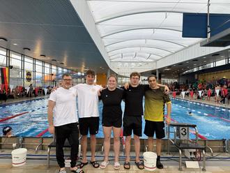 Unsere Schwimmer: Stefan Engel, Tim-Luca Frischbier, Franziska Kleber, Noah Döring, Hugo Cambeses (v. l.n. r.)