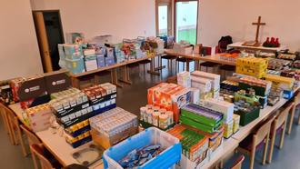 Besonders erwähnen möchten wir die Karton-Spende der Firma TransPak GmbH aus Kaiserslautern. Danke auch für die Bereitstellung des ev. Gemeindehauses durch unsere Pfafferin Frau Samiek. Danke für die Hilfe der Familie Lesoine beim Ansturm auf die Poststation, sowie ausdrücklichen Dank allen großen und kleinen Helfern, die spontan und fleißig gewerkelt haben. Die Paracelsus Apotheke unterstützte uns und stellte Medikamenten-Pakete zum Einkaufspreis zur Verfügung.