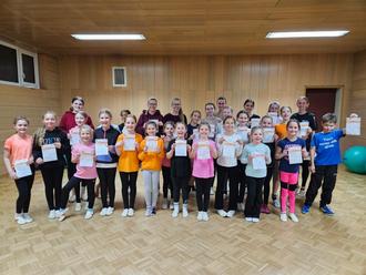 Die Turnabteilung konnte organisiert von Karin Frank sogar 41 Abzeichen ablegen. Silberne Anstecknadeln gab es dabei für Philip und Chalotte Felker während Nina und Leonie Amberger, Charlene Becker, Nela Benner, Anne und Nina Blauth, Lisa Christine Buchner, Clara Dautermann, Aliyah Deubert, Doris Forsch, Nina und Thomas Frank, Alina Gisatulin, Charlotte Haag, Emily Hammermeister, Sarah Harder, Lilly Henkel, Julia Lambrecht, Anouk Matig, Eliana Meier, Amelie Merz, Lola Mika, Sinachi Munachiso, Talia Nagel, Lia Ritzmann, Emilia Rutt, Marie und Max Szech, Lotta Steller, Leo und Zoe Stumber, Mathilda Völker, Claire Vollmer, Anni und Emma Wagner, Hannah Werner, Emily Wojta und Sophia Woldai sowie Greta Woll Gold ablegen konnten. Ebenfalls in der Turnabteilung in der Gruppe um Reinhard Menges konnten weitere 7 Abzeichen abgelegt werden von Charlotte Fehrentz (Bronze), Marie Hildenbeutel (Silber), Marlene Büge (Silber), Mila Roth (Silber), Arne Berner (Silber) und zwei Goldabzeichen von Max Kronenberger und Nikita Schmidt.