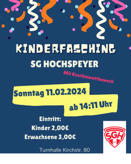 Die SG Hochspeyer bietet in diesem Jahr wieder die beliebte Veranstaltung zu Kinderfasching an!
