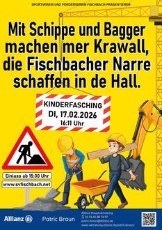 Unter dem lustigen Motto „Mit Schippe und Bagger machen mer Krawall – die Fischbacher Narre schaffen in de Hall“ verwandelt sich die Sporthalle in eine bunte Baustelle voller Spaß, Musik und guter Laune.