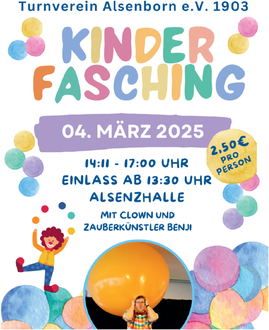 Der TVA lädt alle Kinder und ihre Familien herzlich zur großen Faschingsparty ein! Kommt vorbei und feiert mit uns einen kunterbunten Nachmittag voller Spaß und guter Laune.