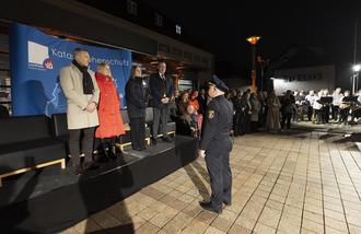 Doch damit war der Abend nicht zu Ende: Vor der Stadthalle war die Ehrenformation des Katastrophenschutzes des Landkreises zum Großen Zapfenstreich angetreten. Musikalisch begleitet von der Kolpingkapelle Kindsbach ehrten die Mitglieder des Katastrophenschutzes ihre langjährige Leiterin und Kameradin. Heß-Schmidt zeigte sich zutiefst bewegt von dieser Überraschung.