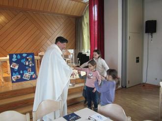 Am 15.02.2025 feierte unser Pfarrer Keller gemeinsam mit der Kirchengemeinde St. Norbert und der Kita Arche Noah ein Fest zur Erinnerung an die Taufe ein. Mit dem geweihten Wasser segnete er die Kinder einzeln und erinnerte somit an das Taufversprechen. Untermalt wurde der Gottesdienst mit instrumental begleiteten Liedern. So wurde alles zu einem lebendigen Mitmach- Gottesdienst. Im Anschluss waren alle zu leckerem Apfelstrudel mit Vanilleeis sowie Kaffee und Kuchen eingeladen.
