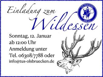Für unser Wildessen am Sonntag, 12. Januar haben wir noch einige Plätze frei.