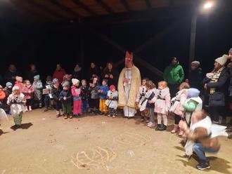 Am Donnerstagabend, den 05.12.24 machten sich viele Kitakinder zusammen mit ihren Familie auf den Weg in den Wald, um Bischof Nikolaus zu treffen. Start war die Oskar Steiner Halle und Ziel der Platz des Musikvereines im Kumb. Nachdem alle Kinder laut gerufen hatten, kam Bischof Nikolaus aus dem Wald und gesellte sich zu den Kindern.Gemeinsam begrüßten wir ihn mit einem Lied. Im Anschluss hatte jede Gruppe etwas für ihn, in Form von Gedichten, einem Lied und einem Tanz,vorbereitet.