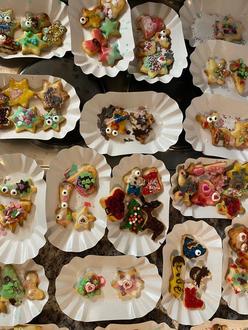 Auch in der Halle wurde viel auf der Mattenfläche herumgetobt. Es gab Kinderschminken und man konnte Plätzchen verzieren. Außerdem konnten die Kinder an einer Bastelstation basteln, wobei schöne Kunstwerke entstanden. Am durch die mitgebrachten Sachen reich gefüllten Knabberbuffet konnten sich zwischendurch alle immer wieder stärken und sich das gemütliche Beisammensein mit Kinderpunsch versüßen.