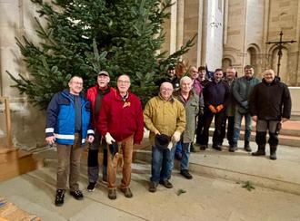 Ein prächtiger Weihnachtsbaum gehört zum Heiligabend-Gottesdienst dazu. Wie in jedem Jahr unternahm es die Task-Force des Waldbauvereins, einen Baum zu besorgen, zu fällen, zu transportieren und aufzustellen. Dazu kamen noch 2 Weihnachtsbäume rechts und links vom Eingangsportal. Unter Mitwirkung der beiden Vorsitzenden Müller und Brand konnte Gemeindediakon Zimmermann wieder wunderbar gewachsene Bäume vor und in der Abteikirche aufstellen lassen. Allen Helfern ein großes Dankeschön für ihren ehrenamtlichen Einsatz!
