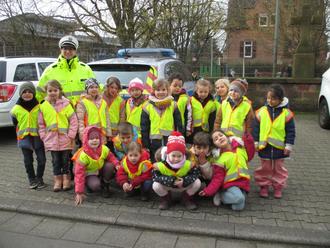 Am Mittwoch, den 21.02.2024 war ein spannender Tag für unsere „Vorwitznasen.“ Frau Flaig von der Verkehrspolizei besuchte die Vorschulkinder in der Vorwitznasengruppe. Zuerst stellte Frau Flaig sich und die Polizei vor und erarbeitet mit den Kindern folgende Fragen. Woran erkennt man die Polizei? Was trägt eine Polizistin alles bei sich? Welche Polizeifahrzeuge kennt ihr? Wofür ist die Polizei da? Auch das richtige Anrufen bei der Polizei und welche Informationen weitergegeben werden müssen, wurde praktisch geübt. Die Kinder lernten im Turnraum an einer mit Seilen dargestellten „Straße“, wie man richtig über die Straße geht und was zu beachten ist. Nach den „Trockenübungen“ im Turnraum machten wir uns gemeinsam auf den Weg in den „echten“ Straßenverkehr. Nacheinander übten die Kinder das Überqueren der Straße bzw. wie verhalte ich mich, wenn Hindernisse wie z.B. geparkte Autos oder Baustellen den Blick oder den Weg versperren oder beim Benutzen einer Fußgängerampel.