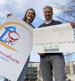 Sehr gerne - und einmal mehr - unterstützen wir vom Benefizteam 42 x 42,195 e. V. die so wichtige und wertvolle Institution "Frauenzuflucht Kaiserslautern" (mit einem Scheck über € 1000.-), welche viel zu selten (und vor allem viel zu wenig mit Unterstützung und Fördermitteln bedacht) im Mittelpunkt des öffentlichen Interesses steht.