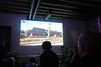 Gezeigt wurde der Film, den Rainer Rohé mit seinem Filmclub vor genau einem halben Jahr beim Transport der Dampflok 50 2652 von Kaiserslautern nach Otterbach gedreht hat. Der Vortragsort, das Bachbahnmuseum in Erfenbach, bot für diese Vorführung den passenden Rahmen.