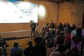 Die Scheune (Pfälzisch „Scheier“) des Bachbahnmuseums war am Dienstagabend voll besetzt. Über 70 Eisenbahninteressierte sind der Einladung zur Videovorführung des Fördervereins „Dampflok am Stellwerk“ e.V. gefolgt.