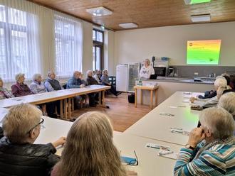 Im Anschluss berichtete Frau Rihlmann für das Programm der „GemeindeschwesterPlus“. Sehr lebensbejahend erzählte sie von ihrer täglichen Arbeit und der Freude, die sie in den Alltag vieler Menschen bringt. Sie setzt vor den Pflegestützpunkten an und unterstützt für eine möglichst lange und selbstbestimmte Zeit.