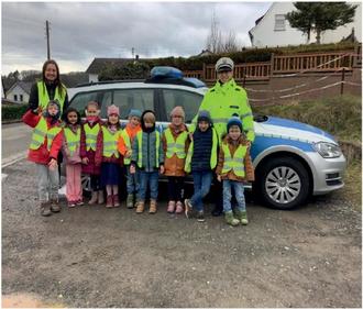 Am Mittwoch, den 26.02.2025 besuchte die Verkehrspolizistin Frau Flaig unsere Vorschulkinder, die Schlaufüchse.