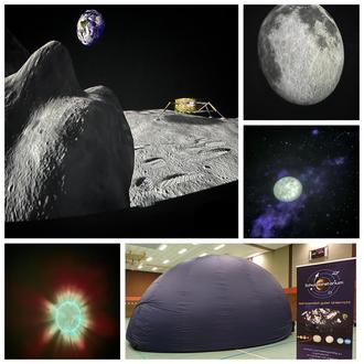 Die Grundschüler konnten im blauen Kuppelzelt zu einer interaktiven Reise durch unser Sonnensystem starten und viele Fragen rund um Sterne, Mond und Planeten stellen. Parallel wurden die Himmelskörper in UHD+-Qualität an die Kuppel projiziert.
