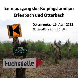 In wenigen Wochen feiern wir Ostern. Mit der Osterfreude im Gepäck machen sich am Ostermontag die Kolpingsfamilien Otterbach und Erfenbach wieder auf den Weg nach Emmaus in der Fuchsdelle. Der gemeinsame ökumenische Familiengottesdienst wird musikalisch umrahmt durch das Kolping-Blasorchester Erfenbach. Anschließend gilt es für die Kinder die Osternester zu finden. Bei Regen findet der Gottesdienst in der Katholischen Kirche Erfenbach statt. Den Hobby-Singers vorab besten Dank für die Gastfreundschaft in der Fuchsdelle.