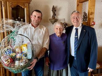 Fröhlich und in Feierlaune empfing Frau Schuster ihre Gäste. Ihre beiden Töchter mit Familie, darunter 4 Enkel und 2 Urenkel waren zu diesem Ehrentag aus der Ferne angereist. Frau Schuster war viele Jahre Chorleiterin des Frauenchors Schallodenbach, in ihrer Freizeit widmete sie sich dem schönen Hobby der Bauernmalerei. Für die Verbandsgemeinde gratulierte der Beigeordnete Martin Müller und die Glückwünsche der Ortsgemeinde überbrachte der Beigeordnete Sascha Michel.